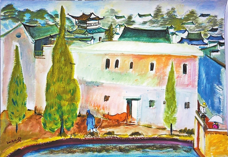 | 纸本油彩 《渼陂·早春之二》(“美碑 善碑 真碑——雷子人式考现”展;南京艺术学院美术馆;6月至8月) 雷子人绘 |