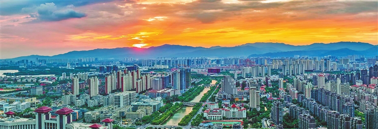 南昌市红谷滩区,盛夏的晚霞瑰丽旖旎。 本报全媒体记者史港泽摄