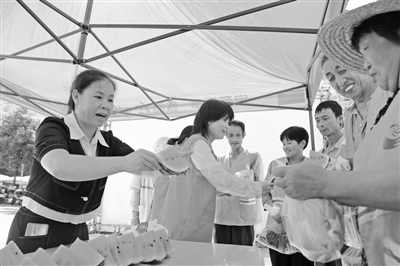 近日,石城县温坊社区开展“夏日送清凉”活动,工作人员为环卫工人发放装有防暑用品的清凉包和新鲜西瓜。