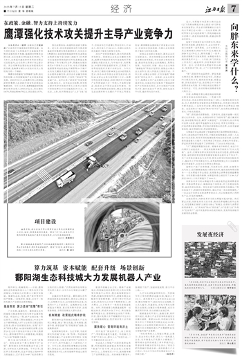 金融活水奔涌不息。鄱阳湖生态科技城创新基金招商模式,联合设立基金10只,总规模30亿元,已间接投资优必选、优地等8个上下游项目。总规模40亿元的新基金正筹备,重点投向数字经济、高端装备制造,为项目发展注入源头活水。