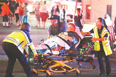 7月13日,在美国马萨诸塞州,救援人员从发生火灾的养老院内转移出一名伤者。