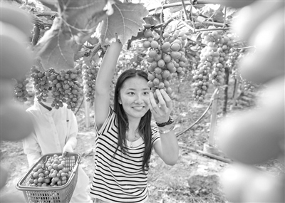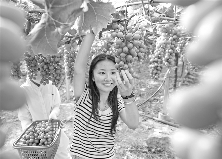 7月9日,德安县后田村袁家山生态园内,百亩葡萄园迎来丰收,吸引游客前来体验采摘之乐。本报全媒体记者 田 野摄