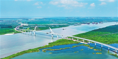 7月15日,在鄱阳湖畔,位于南昌市新建区的铁河大桥,如一只凌波展翅的白鹤跃然于赣江支流。桥身之上,车辆往来穿梭,串联起城市的霓虹律动与乡村的鱼跃稻香。
