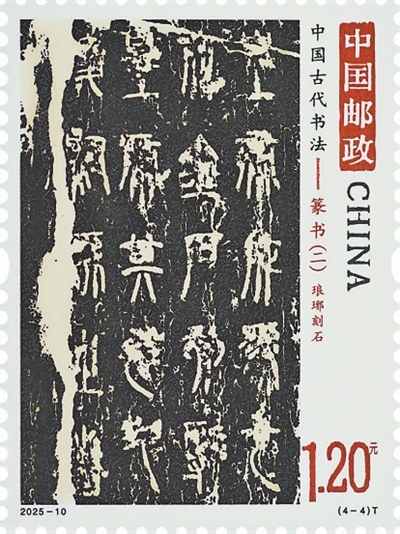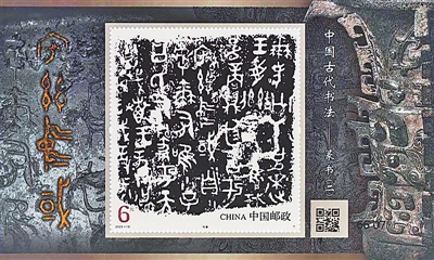 2011年,中国邮政以篆书为龙头,开启中国古代书法邮票选题系列。今年6月21日,中国邮政再次发行篆书题材邮票,即《中国古代书法-篆书(二)》(以下简称《篆书(二)》),一套4枚、小型张1枚。通过五件国宝上的青铜铭文与石刻文字拓片传递千年篆韵。