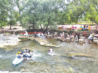 夏日,新余市的美丽乡村避暑游日益火爆。图为7月17日,仙女湖区欧里镇洲上村的鹿岗古桥网红景点,吸引了许多游客休闲避暑。