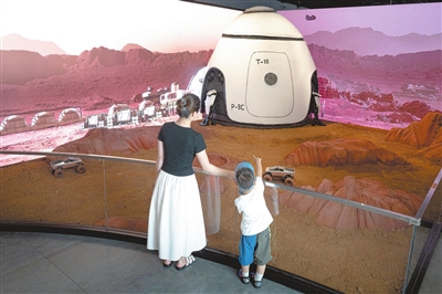 7月18日,“走!去建设火星”硬科幻行星科学体验展在湖北武汉的中国建筑科技馆开幕,展出10余个互动展项、30余块陨石。新华社记者 肖艺九摄