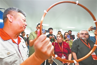| 7月16日,外媒嘉宾在位于抚州市的江西铜博科技股份有限公司采风。 本报全媒体记者 吴文兵摄 |
