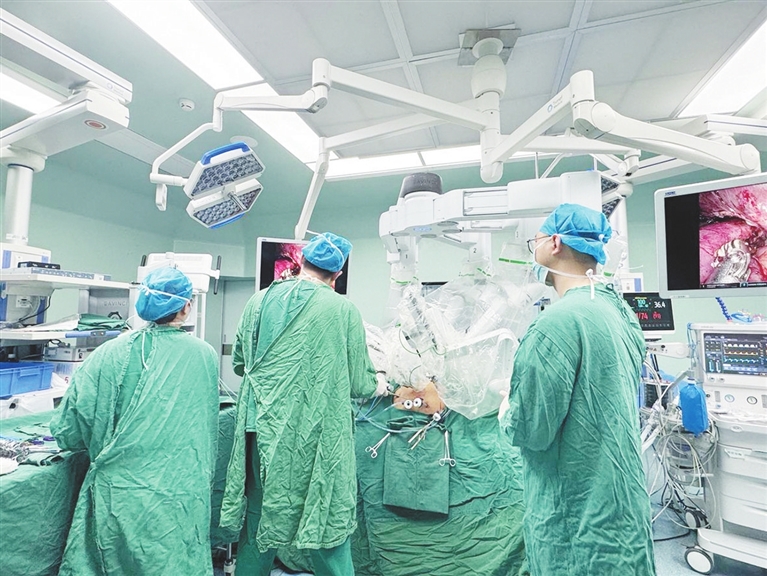 近日,赣南医科大学第一附属医院泌尿外科成功为一名多次手术失败的复杂输尿管狭窄患者施行机器人辅助腹腔镜阑尾补片嵌入输尿管成形术。该手术系省内首次开展,标志着该院在上尿路修复重建领域再上一个新台阶,为输尿管长段狭窄患者提供了更优的微创解决方案。 徐 辉摄