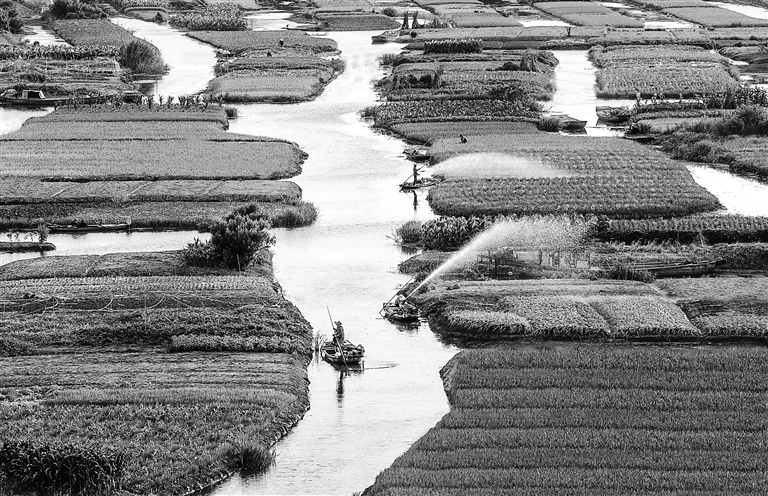 7月22日,农民在江苏省兴化市垛田街道高家荡村的田间劳作。 新华社发(周社根摄)