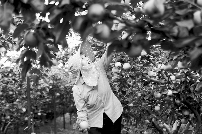 7月22日,农户在江苏省连云港市连云区云山街道李庄村摘梨。 新华社发(王 春摄)