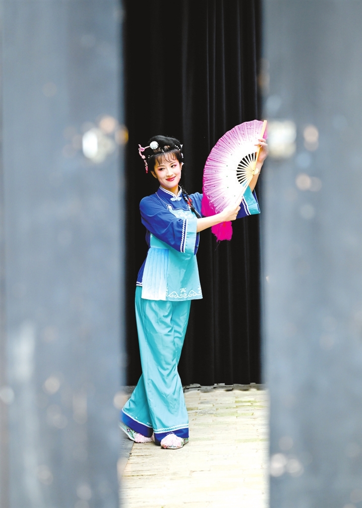 | 7月11日,采访团成员来到位于赣州的会昌戏剧小镇,一名演员正在练习采茶戏。 |