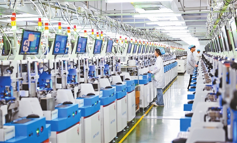 | 7月9日,采访团成员走进吉安市木林森实业有限公司,工作人员正在LED封装车间作业。 |