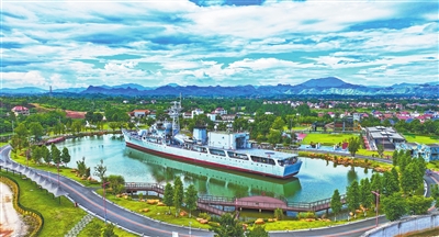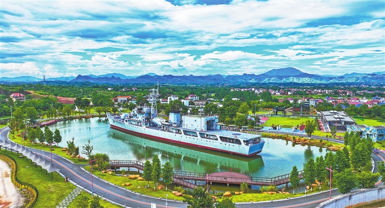 | 7月10日,兴国县红兴谷研学营地,采访团成员登上退役护卫舰“旅顺号”参观。 |