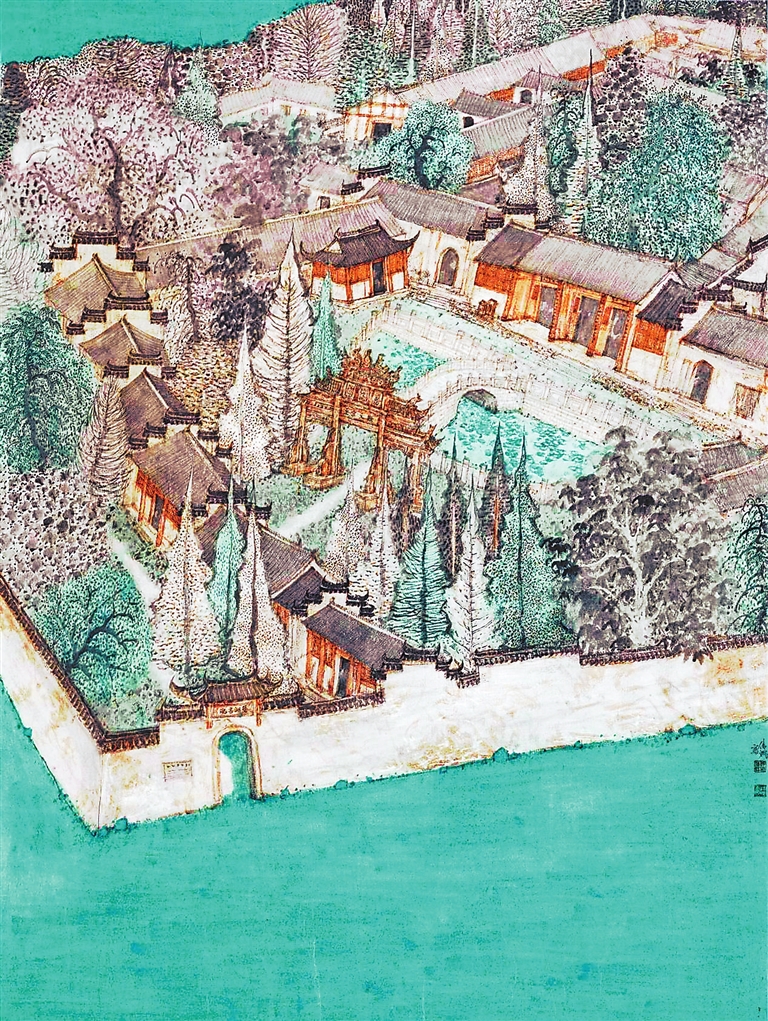 《鹅湖忆秋》以中式建筑为骨立形,淡雅色调为韵赋神,疏密景致为境传情。勾勒渲染间涤尽喧嚣,愿观者入此水墨天地,在山水诗意中暂抛纷扰,寻得心灵安宁,感受传统美学的永恒魅力与精神升华。