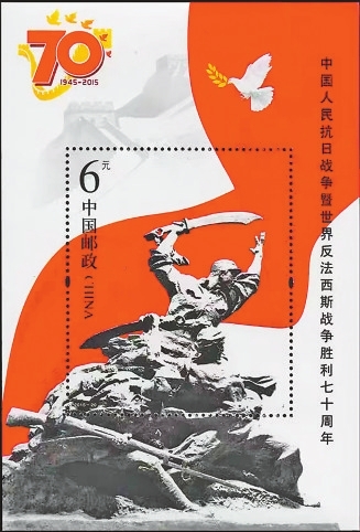 中国邮政2015年发行《中国人民抗日战争暨世界反法西斯战争胜利七十周年》邮票,第四枚“中国人民抗日战争纪念馆”背景图案正是将士挥舞大刀、奋勇杀敌的场景。