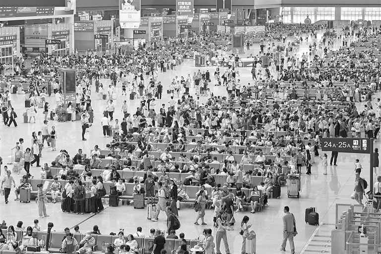 8月1日,旅客在贵阳北站候车大厅候车。 新华社发 (张 维摄)