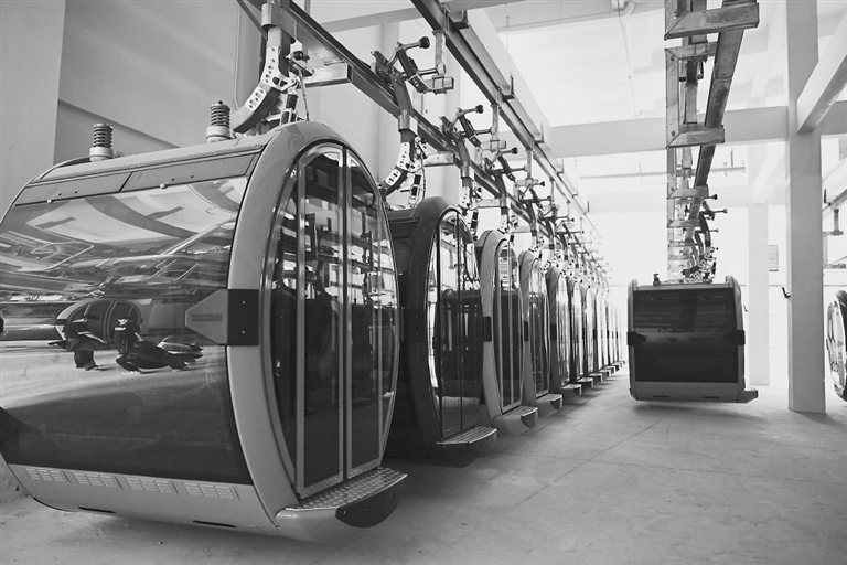 轿厢有序悬挂在室内车库轨道上