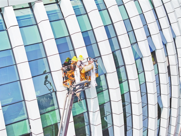 7月31日,泰和县文化艺术中心项目正在进行场馆幕墙安装施工作业。据悉,该项目总投资2.38亿元,涵盖艺术剧院、绘画大系展览馆、青少年宫等多功能文化设施。特约通讯员 邓和平摄