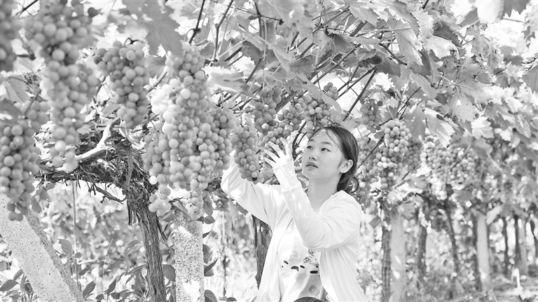 7月30日,横峰县龙门畈乡钱家村葡萄进入成熟期,吸引游客前来体验采摘乐趣。据悉,该村种植阳光玫瑰、巨峰、醉金香等优质品种600余亩,年产值突破700万元。通讯员 侯先钢摄