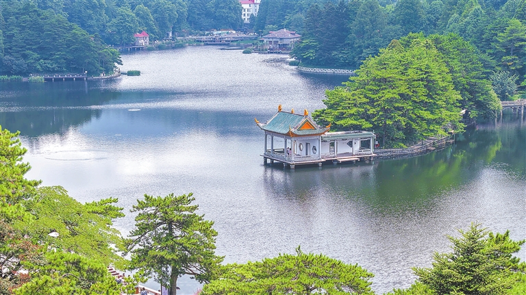 ▲8月3日,庐山风景区,位于庐山之巅的如琴湖在群山环绕中犹如山水国画,吸引各地游客前来观光。
