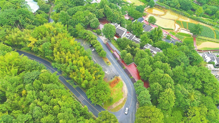 ◀8月1日,大余县黄龙镇大龙村丫山,通村公路沿线绿树成荫、风景优美,吸引许多游客驱车前来游玩。