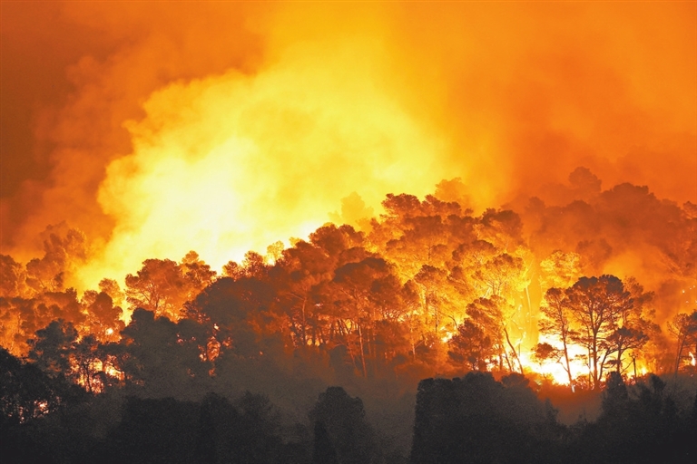 这是8月6日在法国南部的圣洛朗-德拉卡布勒里斯拍摄的熊熊野火。法国南部奥德省5日下午发生森林大火,到6日过火面积已达1.1万公顷。 新华社/路透