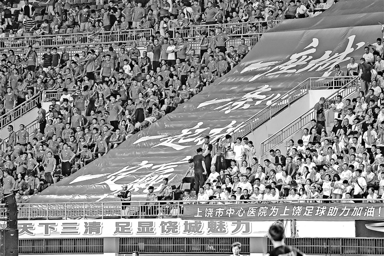 球迷的呐喊助威与热情,也能转化为球队的战力。图为8月2日,上饶队主场与南昌队的比赛中,两队球迷为各自球队加油。本报全媒体记者 李 征摄