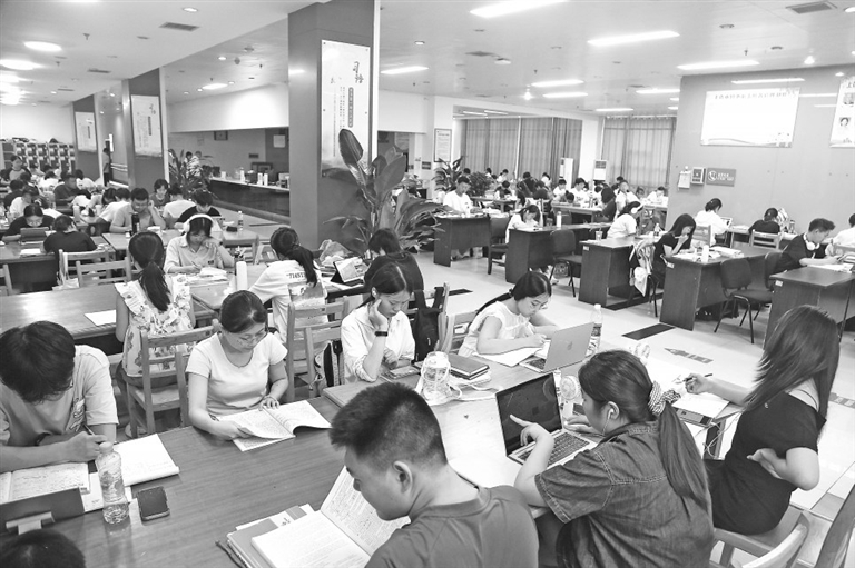 8月4日,记者在上饶市图书馆看到,自习区内座无虚席,学生们埋头刷题,徜徉书海。本报全媒体记者 余 燕摄