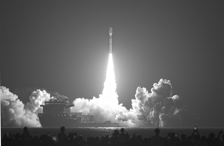 8月9日0时31分,我国太原卫星发射中心在山东日照附近海域使用捷龙三号运载火箭,成功将吉利星座04组卫星发射升空,卫星顺利进入预定轨道,发射任务获得圆满成功。 新华社发 (郭金祺摄)