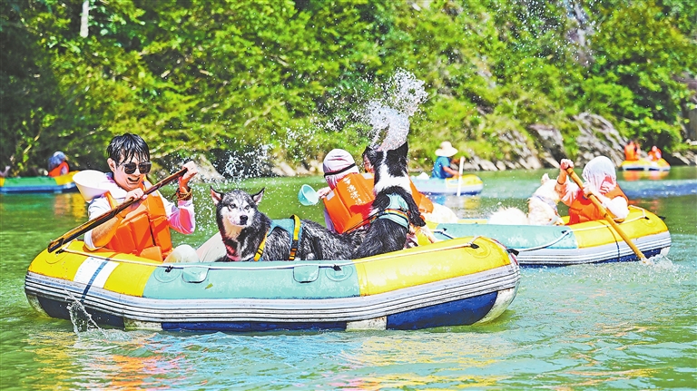 正值暑期,靖安县金罗湾漂流区迎来了一支由“汪汪队”组成的漂流大军,宠物们在主人的带领下戏水玩乐,萌态百出;位于瑞昌市的江西华亨宠物食品股份有限公司,工作人员正加紧生产宠物食品,准备运往全国各地;南昌市西湖区某商场的小象动物公园内,孩童踮起脚尖,把菜叶递向围栏中的羊驼,清脆的笑声此起彼伏。