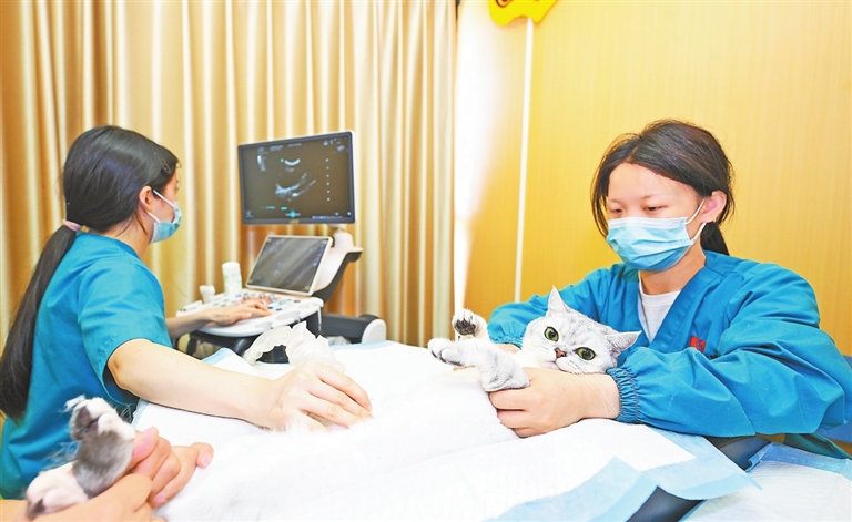 南昌市民、泰迪犬“小宝”的主人吴女士告诉记者:“我每天都会为它梳毛、打扮,10年来,我们互相陪伴,它是我们家的重要成员,更是我的情感寄托。”“原来我们主要为宠物处理简单外伤,现在医院设立了内科、影像科等专业科室,可以为‘毛孩子’们提供全面体检。”南昌贝贝宠物医院国威路店院长张宏伟说。