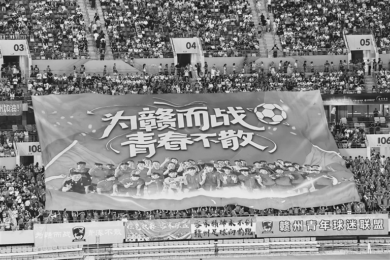 压题图:8月10日,在对阵抚州队的比赛中,赣州球迷为主队加油。
