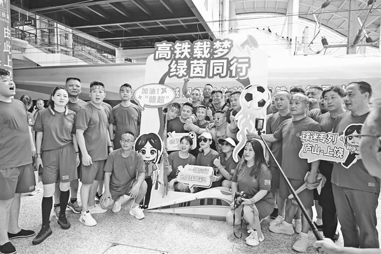 8月10日14时34分,G9813次赣超球迷专列搭载着1100余名九江球迷前往上饶,为客场作战的九江队加油助威。