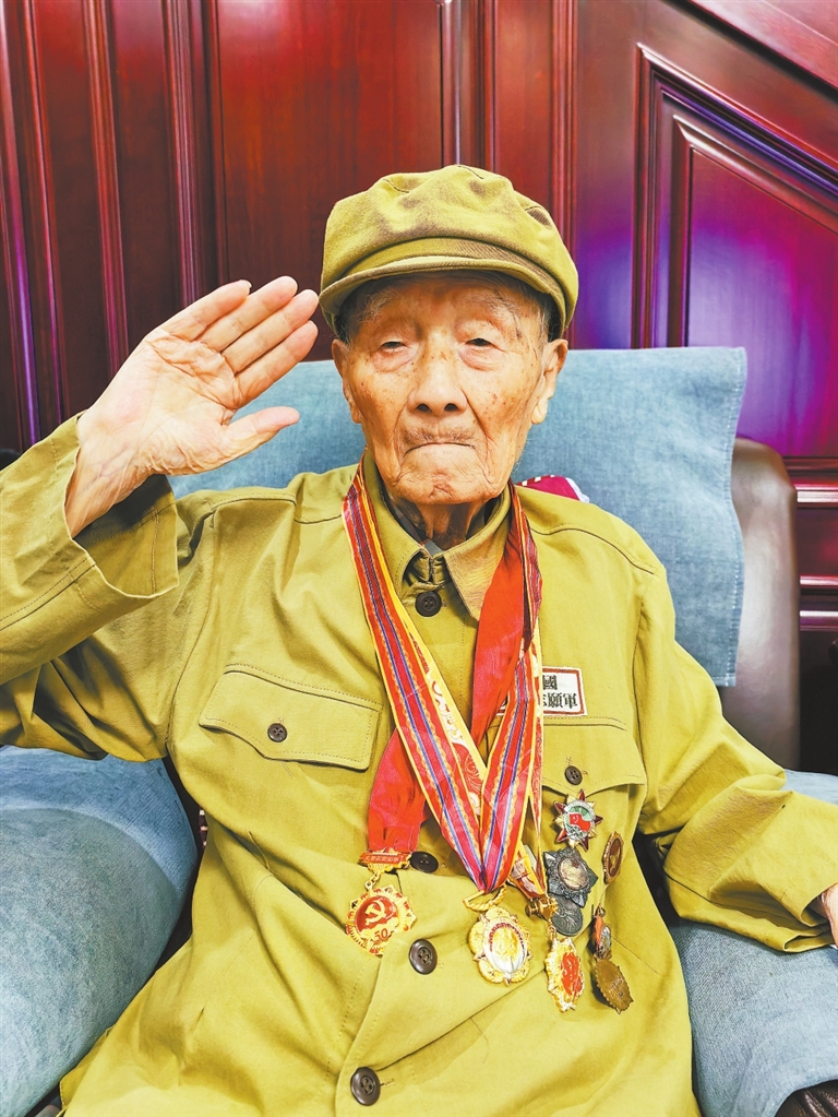 “这是父亲抗战时留下的弹片创伤。”8月6日,记者前往104岁抗战老兵齐克新居所采访时,齐鲁林托着父亲受伤的左手说道。谈及抗日战争,齐老眼神坚定,话语也变得激昂起来。80多年前,他投身八路军的革命熔炉,在抗日战场抛洒热血。