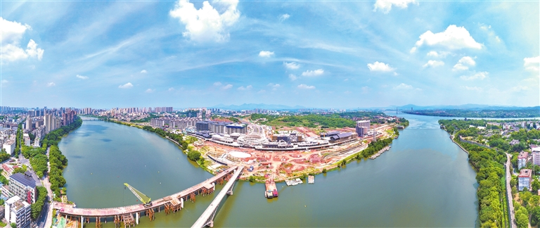 为打造城市新名片,赣州市章贡区于2022年启动了三江口片区水西组团项目开发建设,依托赣江、章江形成滨江发展带,构建“文商旅融合+生态治理+产业导入”的开发模式,全面激活片区发展动能。图为8月10日,航拍正在建设中的章贡区水西镇水西村。本报全媒体记者 吴福清摄