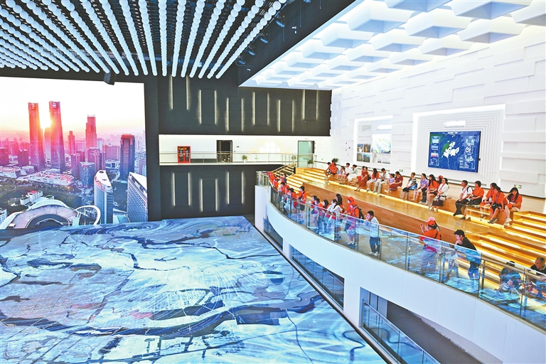 暑假期间,随着旅游市场持续升温,江西各地文化场馆迎来客流高峰。图为8月14日,游客在南昌市规划展示中心的总规沙盘厅内观看数字沙盘演示。本报全媒体记者 王蕴蓉摄