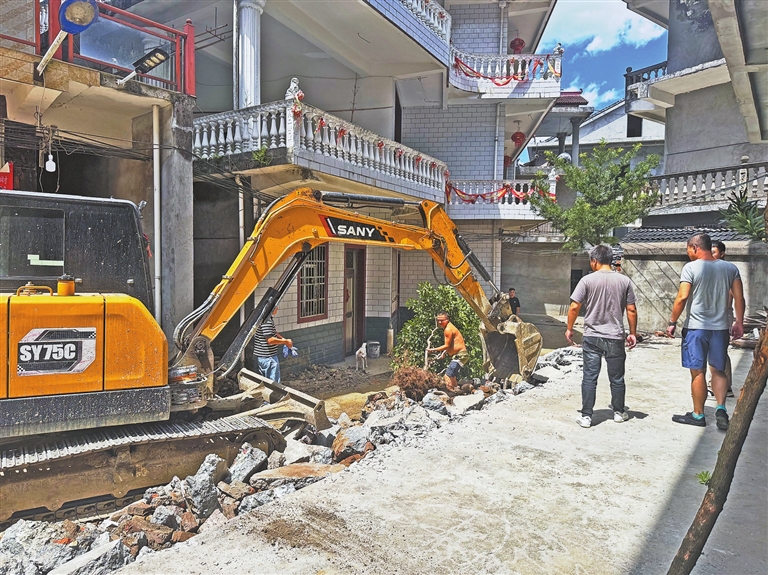 8月2日,挖掘机正式进场,如今,这条长约400米的道路由3米拓宽至5米,最复杂的地段也保证了4米宽,预计10月份可全面完工并交付使用。