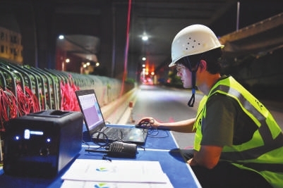 近日,江西交投咨询集团天驰公司对南昌九洲高架快速路开展桥梁荷载试验。检测团队冒酷暑、熬通宵,除了采用传统的动静载测试法,还引入国际前沿的微波雷达技术,为大桥安全上“双保险”。黄小文摄