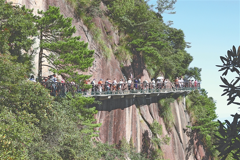 暑期以来,三清山风景名胜区内每天人头攒动,景区实行科学管理,预约叫号引导游客有序登山。图为8月16日,三清山的奇峰异石、松涛云海,让游客乘兴而来尽兴而归。
