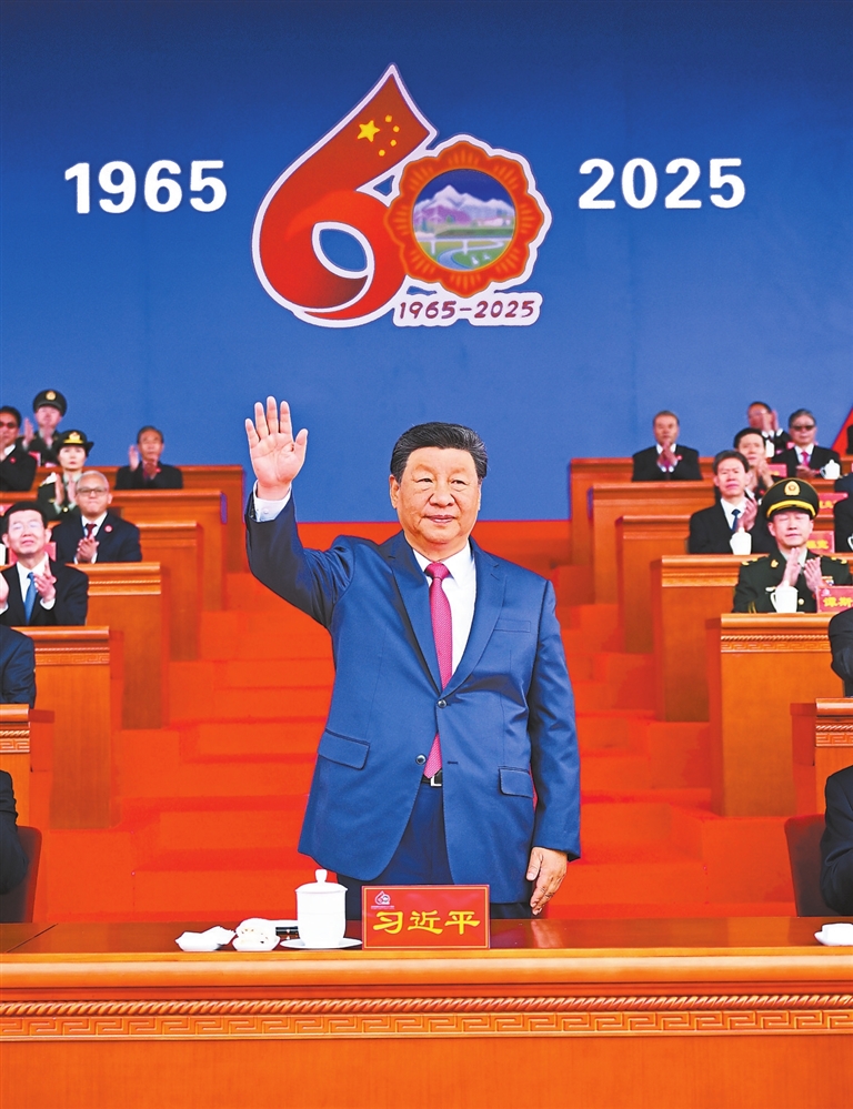 王沪宁发表讲话。他说,1965年9月,在党中央亲切关怀和党的民族政策光辉照耀下,西藏自治区宣告成立。这是西藏发展史上具有划时代意义的大事,巩固了西藏和平解放和民主改革的伟大成果,实现了西藏社会制度的历史性跨越。60年来,西藏经济社会全面发展,民族区域自治制度成功实践,民族团结日益巩固,各族人民生活蒸蒸日上,充分展现了中国共产党领导的坚强力量,充分展现了我国社会主义制度的显著政治优势。