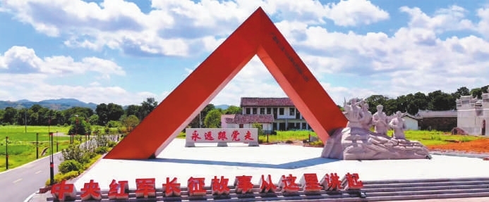 “中央红军长征故事从这里讲起”。这行字排列在长征国家文化公园(广昌段)重要组成部分——罗家堡红军广场的石阶上方,由花岗岩雕成的立体文字鲜红夺目。广场不远处,是设立于当年红九军团指挥部旧址的长征前夕的激战红色教育基地。来自福建的一群高校师生边走边看,通过一个个文字、一张张图片,感悟发生在这块红色土地上的革命往事。