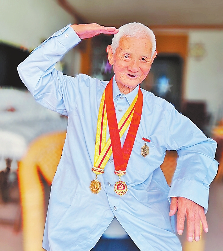 近日,笔者走进于都县99岁抗战老兵万更志家中,午后的阳光透过洁净的玻璃窗,洒满客厅,屋内陈设简朴,万更志正坐在窗边的竹椅上,手执蒲扇。