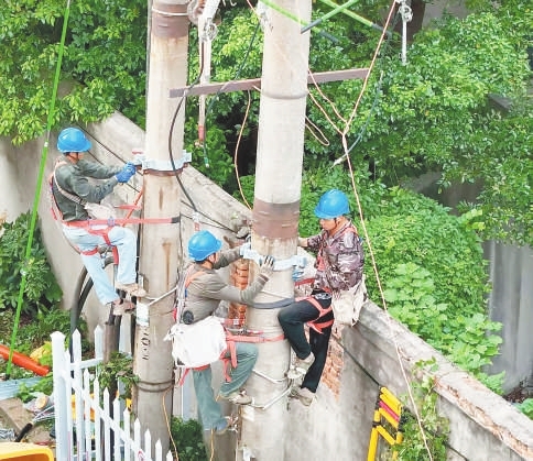 近日,在南昌市青山湖区丰源天域小区配电变压器改造现场,国网江西省电力有限公司南昌市青山湖区供电分公司工作人员冒着酷暑,采用低压发电车并网新技术,全程不断电更换变压器,确保周边居民及商户正常用电。吴 成摄