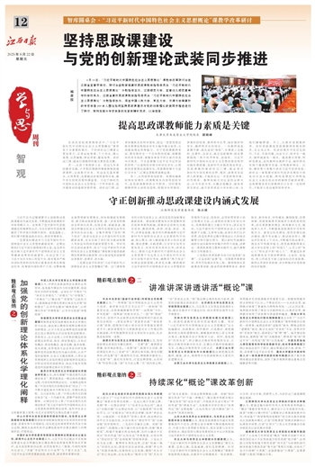 江西师范大学马克思主义学院执行院长尤琳教授认为,要通过编写新时代伟大变革典型案例融入“概论”课教学参考讲义、教学设计以丰富教学内容,探索“问题+专题+特色”专题教学以重塑课堂教学内容,形成基于“典型案例深度解析”的立体化教学新模式以创新教学模式,打造“四维课堂”的教学新路径以拓展教学场景,打造“红绿古”三色文化资源融合的教学新范式以活化教学资源。