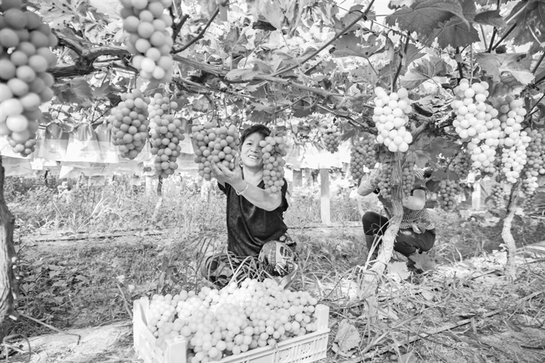 8月23日,横峰县岑阳镇阳光玫瑰葡萄种植大棚里硕果累累,果农们忙着采收葡萄供应市场。 通讯员 薛 南摄