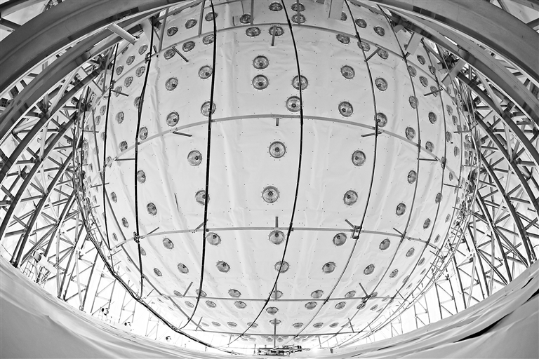 据新华社广州8月26日电 (记者胡喆、马晓澄)地下700米,广东江门的一处静谧山体深处,一个直径超35米的有机玻璃球正静静捕捉来自宇宙的“幽灵粒子”——中微子。