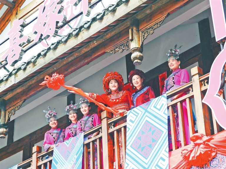 8月26日,在四川省达州市巴山大峡谷景区,演员为游客表演迎七夕土家族婚嫁民俗。