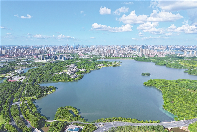 南昌水系资源丰富,水域面积超2200平方公里。近年来,南昌河湖环境持续向好,“一江十河串百湖”的城市生态轮廓更加灵动。图为日前航拍下的南昌市前湖区域。本报全媒体记者 吴文兵摄