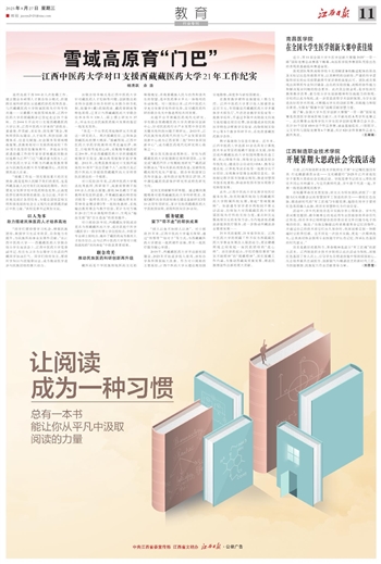 连续选派干部100余人次赴藏工作、建立健全本硕博人才联合培养模式、组建跨区域科研团队完成藏药新药剂型改造、与西藏藏医药大学附属医院灸疗科专科共建……从赣鄱大地到雪域高原,江西中医药大学的援藏脚步已坚定走过21个春秋。自2004年开启对口支援西藏藏医药大学以来,江西中医药大学秉持“讲政治、重感情、作贡献、求实效、同发展”理念,聚焦师资队伍建设、人才培养、科技创新、管理体系、信息化赋能、社会服务等领域精准施策,获教育部对口支援西部高校工作10周年典型经验集体称号。多批由学校派遣赴藏工作的专家学者被藏族同胞亲切地称为江西“门巴”(藏语意为医生),江西中医药大学正不断为西藏高等教育事业与民族医药振兴书写赣藏同心、共同发展的动人乐章。