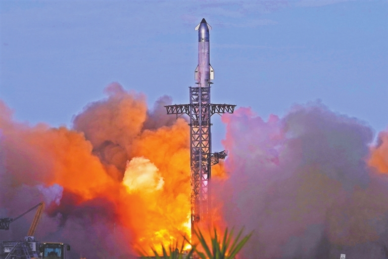 美国中部时间26日,太空探索技术公司新一代重型运载火箭“星舰”从美国得克萨斯州发射升空,实施第十次试飞。火箭第一级和第二级均在预定海域溅落。 新华社/美联
